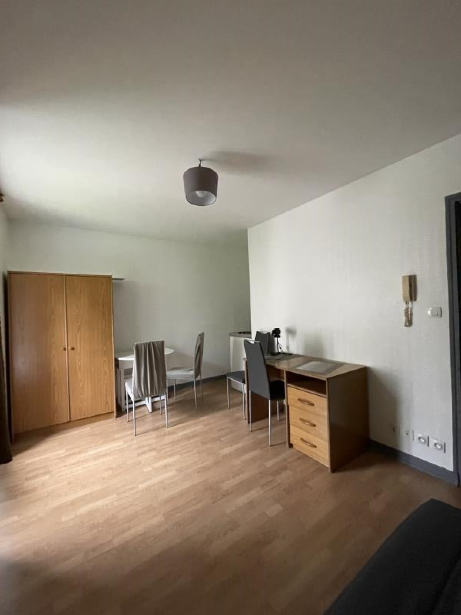 Un studio meublé d'environ 19m² offrant un séjour avec coin cuisine, une salle de bain et WC.
