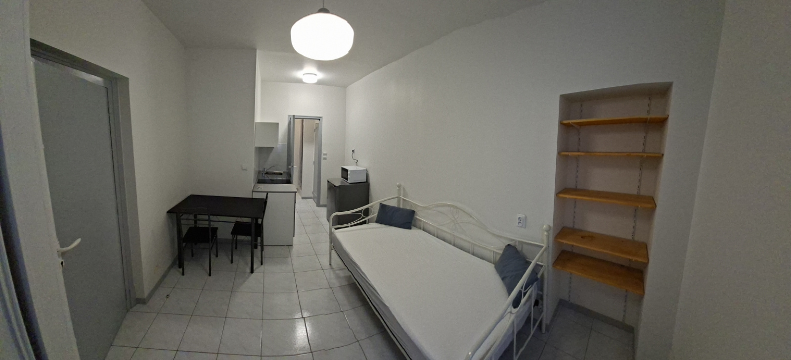 Dans le centre ville de Poitiers, un studio meublé et tout juste renové de 19m² comprenant : un séjour avec cuisine ouverte, une salle d'eau et un wc. L'appartement dispose d'une cour commune.