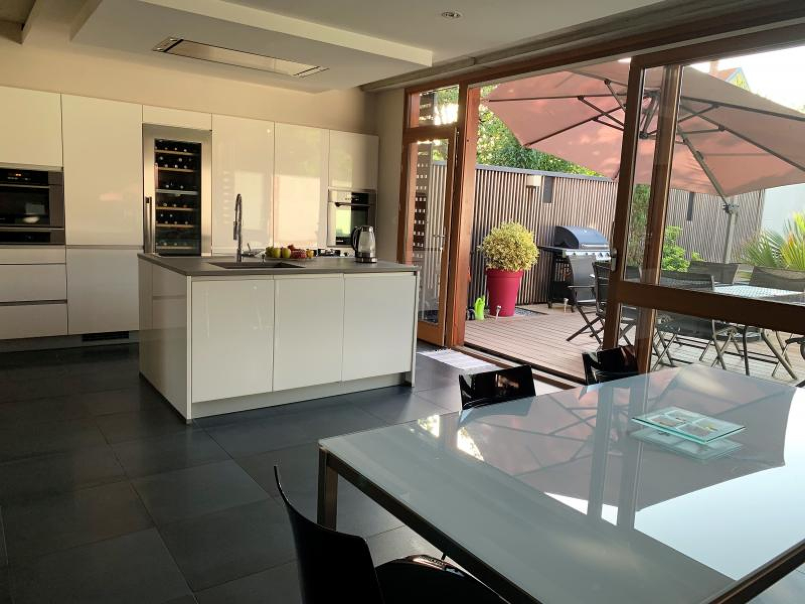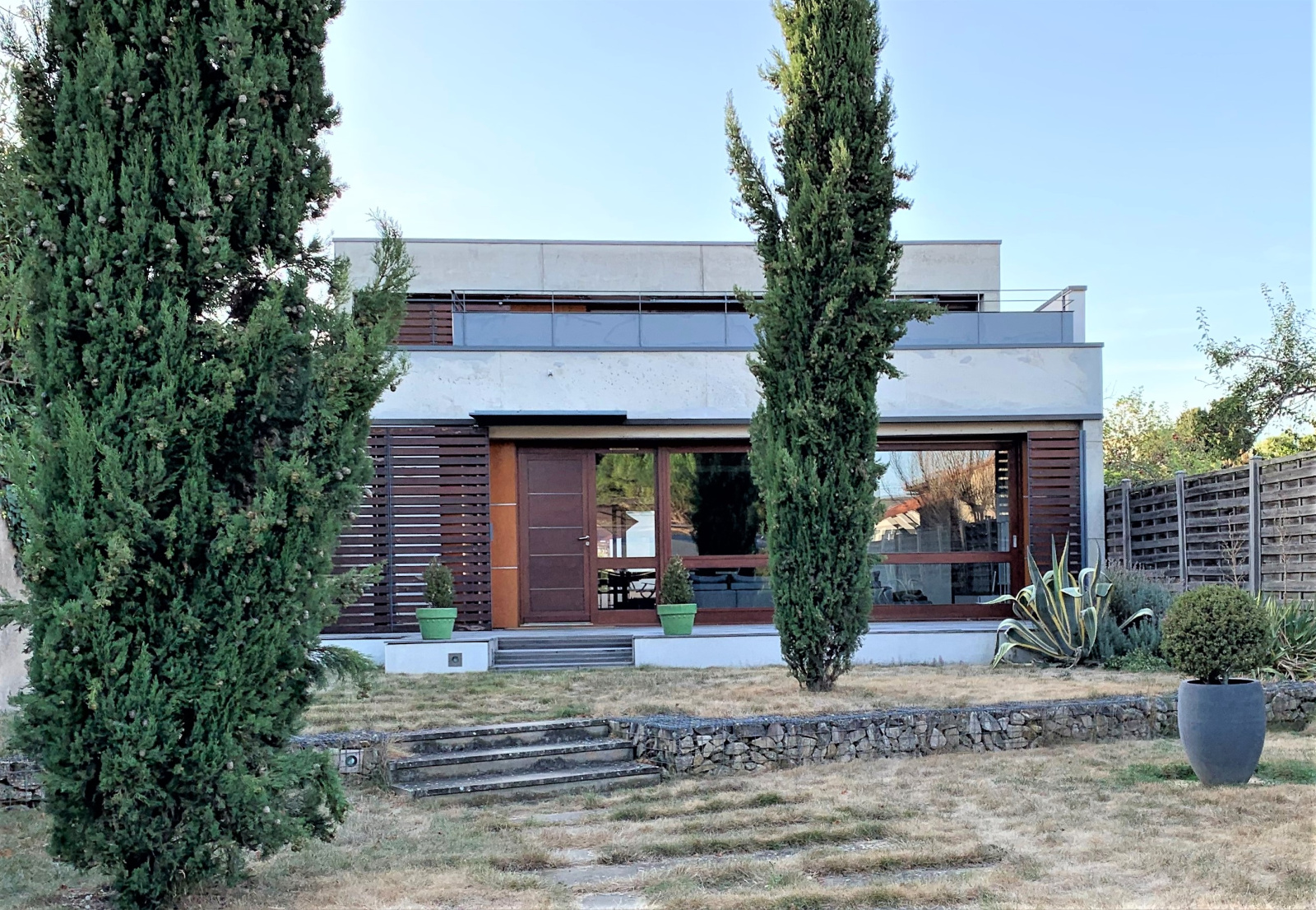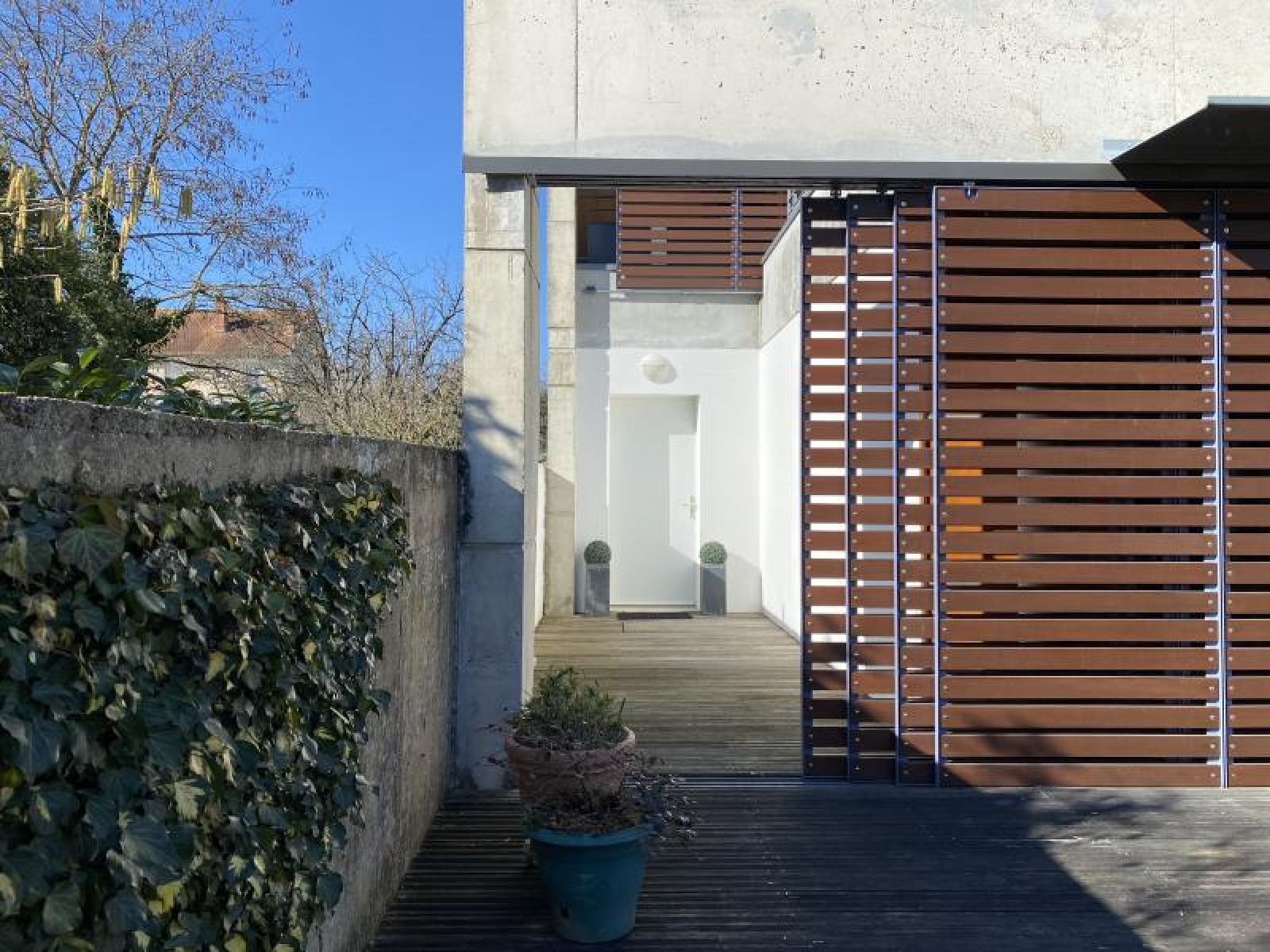 Dans un quartier résidentiel et calme, venez découvrir cette jolie maison d'architecte qui se caractérise par ses volumes, sa luminosité et son confort. Côté rue, il est impossible de deviner qu'un bijou se cache derrière le préau d'entrée.