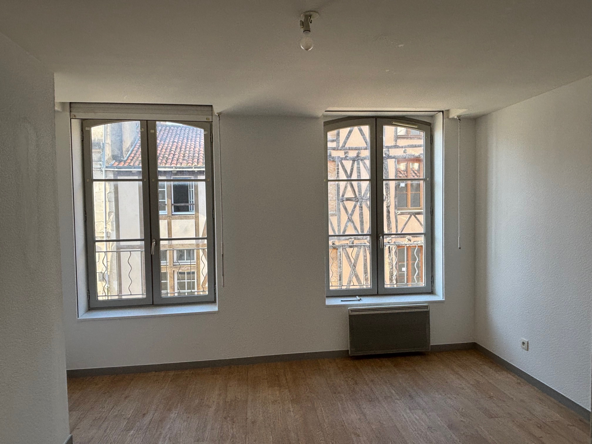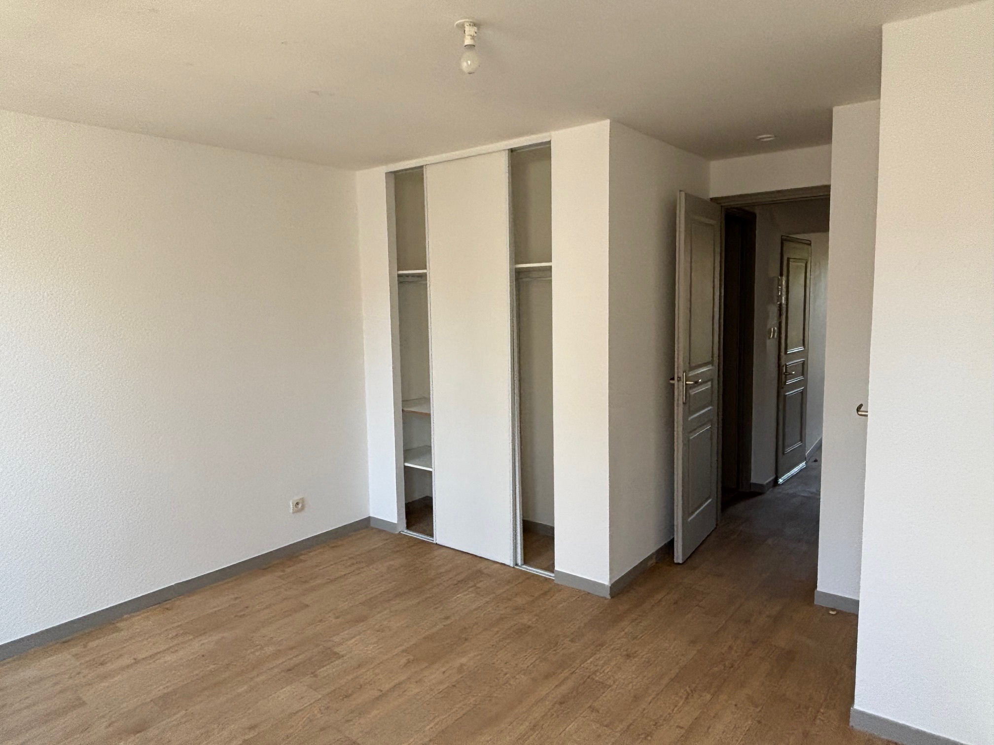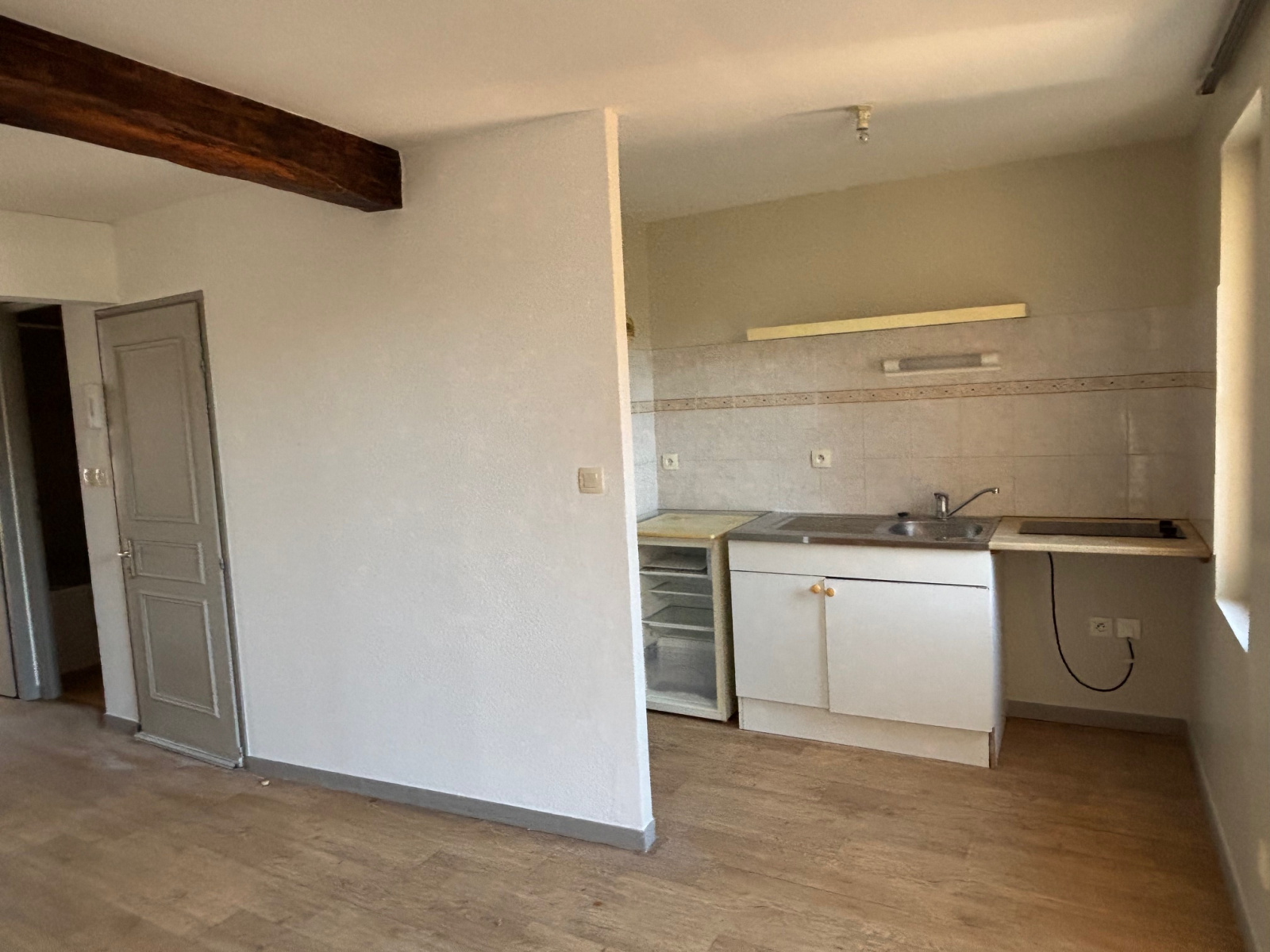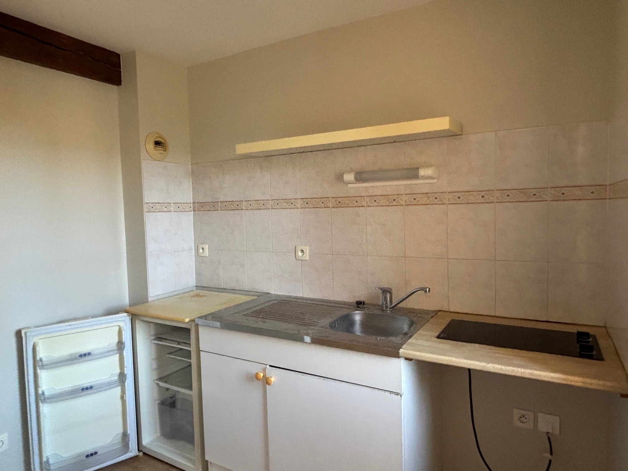 Appartement T2 offrant : entrée, séjour avec coin cuisine, chambre avec placard, salle de bains, WC.