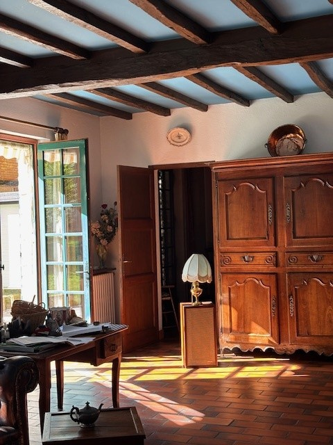 Au rez-de-chaussée, une entrée donnant sur une grande pièce de vie avec cheminée en pierre, une salle à manger, un salon avec accès sur terrasse et véranda. Une cuisine, ainsi qu'une chambre, buanderie/chaufferie et un wc.